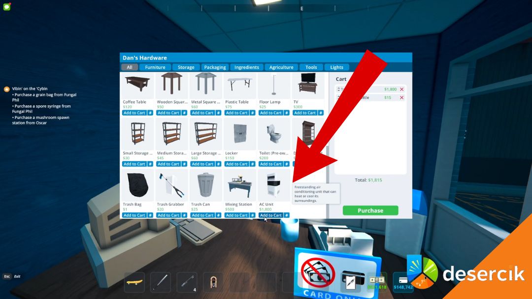 AC Unit nie jest dostępny od początku gry. Ten sprzęt pojawia się dopiero po odblokowaniu zawartości z Shrooms Update i jest powiązany bezpośrednio z postępem fabularnym. Kupisz go wyłącznie w Dan’s Hardware Store, a jego cena wynosi 1800 dolarów.