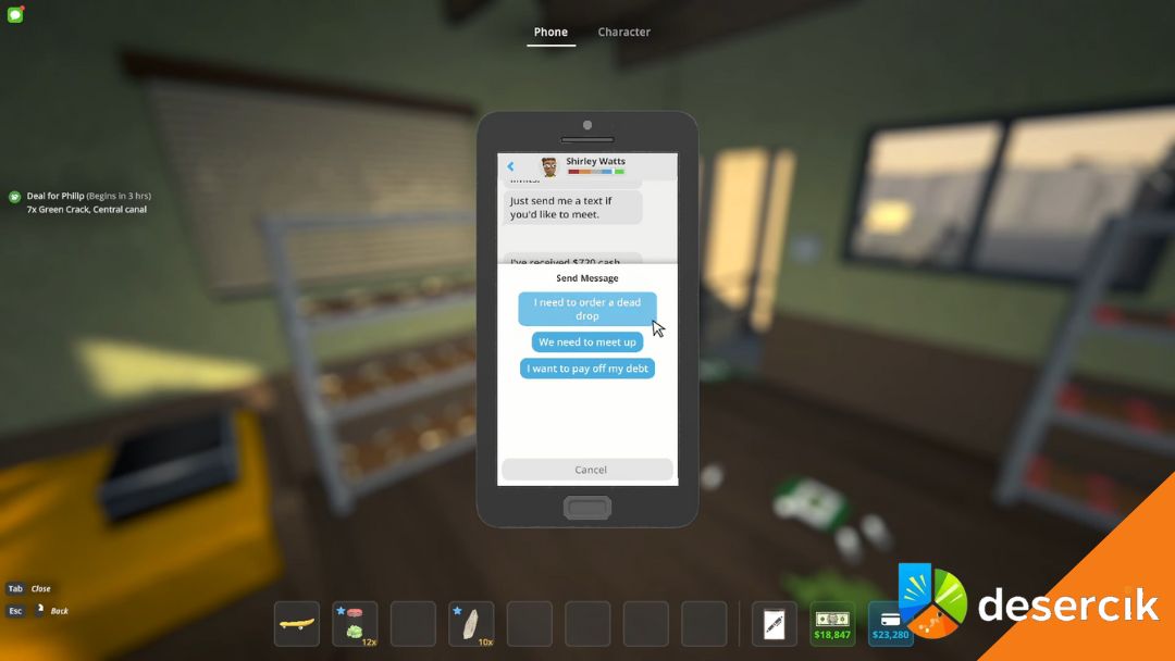 Cały proces jest prosty i intuicyjny. Piszesz do Shirley wiadomość, wybierasz ilość pseudo i czekasz. Odbiór zawsze odbywa się przez dead drop, a jego lokalizacja za każdym razem jest inna. Gra automatycznie zaznacza ją na mapie, więc nie musisz niczego szukać na ślepo.