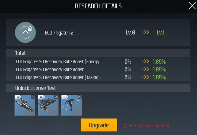 Aby odblokować statek, gracz musi zdobyć licencję pilota Lv.1 odpowiadającą krajowi, typowi statku i poziomowi technicznemu tego statku. Ulepszanie tej licencji może zwiększyć premie dla statku i odblokować dodatkowe miejsca na urządzenia i komponenty.