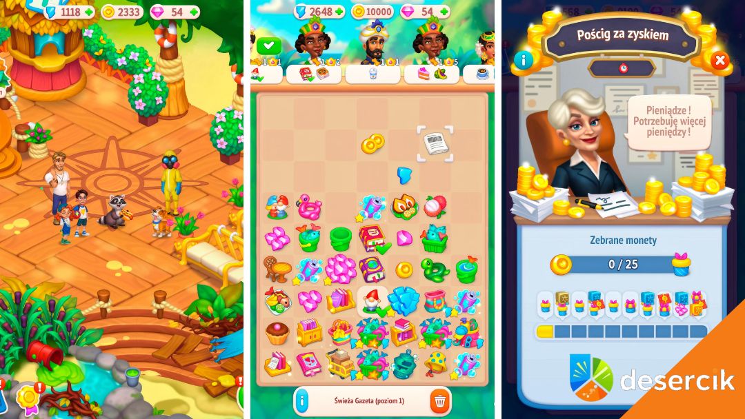 Secrets of Paradise: Merge to typowa gra typu merge, ale z dość rozbudowanym systemem progresji i lekką warstwą fabularną, która prowadzi cię przez kolejne etapy odbudowy wyspy. Na pierwszy rzut oka wygląda to jak prosta układanka polegająca na łączeniu przedmiotów, ale w praktyce gra szybko pokazuje, że trzeba tu myśleć trochę bardziej strategicznie, szczególnie jeśli chcesz robić postępy bez blokowania się na energii i braku miejsca na planszy.
