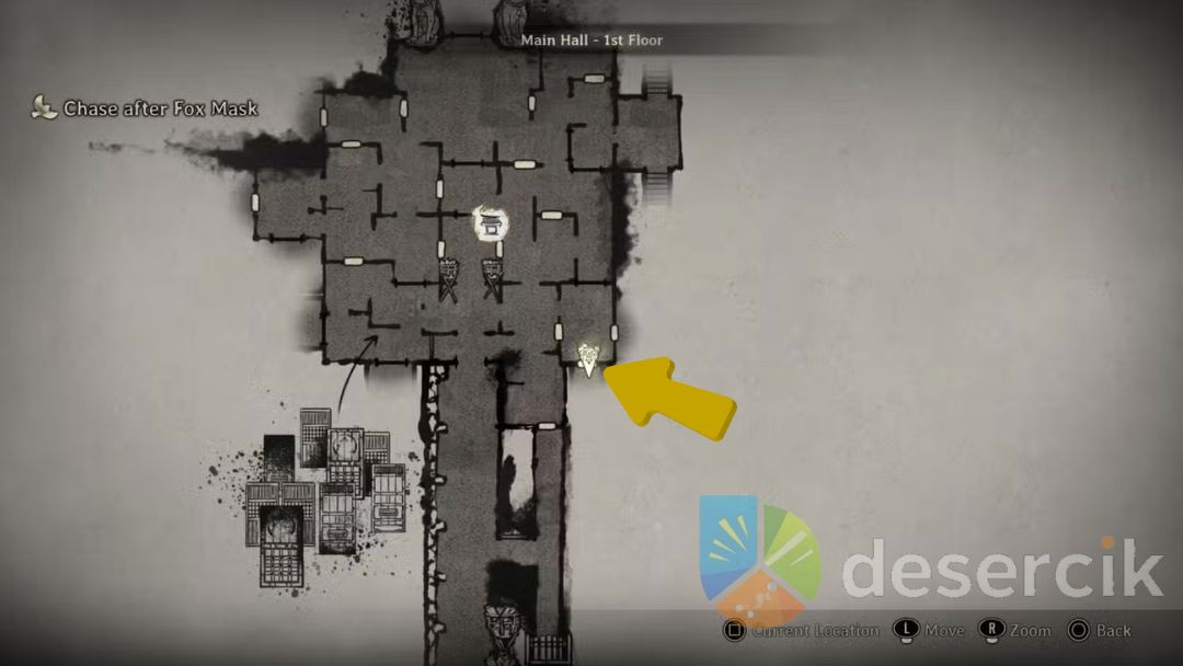 Aby dotrzeć do Agura no Hotei-sama, wejdź do korytarza, w którym początkowo zdobywałeś Kudzu Emblem. Wejście znajduje się po wschodniej stronie początkowego obszaru Głównej Sali. Po wejściu, skręć w lewo i wejdź po dwóch schodach, aby dotrzeć do pomieszczenia z uszkodzonymi deskami podłogowymi. Omiń je i zwróć uwagę na ścianę z symbolem. Skorzystaj ze zdolności Kudzu Emblem, koncentrując się na ścianie, co zniszczy ją i stworzy przejście. Przejdź przez nie, aby dotrzeć do nowego obszaru, który był niedostępny w pierwszym przejściu.