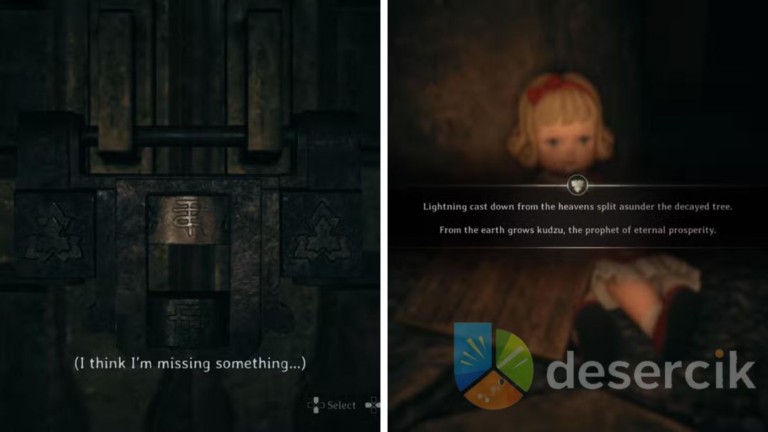 Po tymczasowym unieszkodliwieniu przeciwnika, gracz powinien skierować uwagę na drewniane Emas. Należy sprawdzić, czy wśród nich znajdują się symbole odpowiadające wskazówkom z lalki: Lightning, Decayed Tree i Kudzu. Kudzu można łatwo rozpoznać po różowym kwiatku otoczonym zielonymi liśćmi. Każdą tabliczkę należy odwrócić, aby ujawnić ukryty symbol.