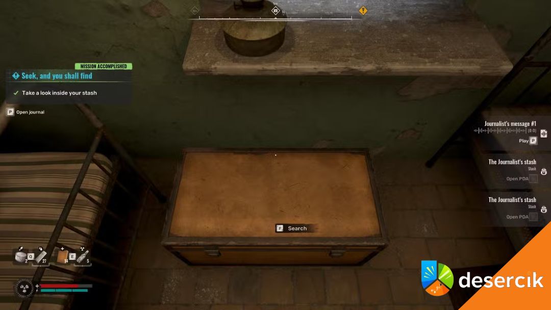 Zadanie pojawia się dopiero po ukończeniu głównego wątku Igła w Stogu Siana w Zalissyi. Gdy skończysz ten etap, dostajesz podpowiedź, żeby zajrzeć do swojej Prywatnej Skrytki. W środku czeka Pendrive Dziennikarza, który od razu ujawnia wszystkie punkty ze skrytkami rozsianymi po całej Strefie.