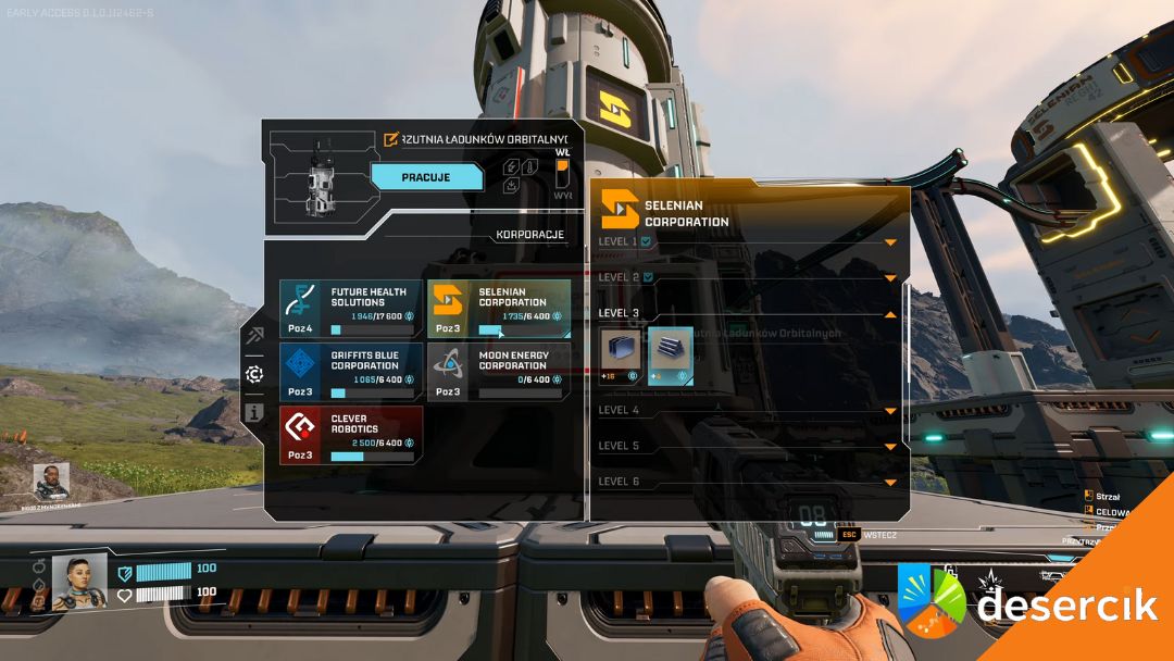 Zanim wyrzutnia zacznie działać, musisz wiedzieć jakie surowce są potrzebne do odblokowywania kolejnych poziomów w korporacjach. Każda korporacja wymaga innych materiałów, dlatego najlepiej sprawdzić w swoim panelu, co jest wymagane.