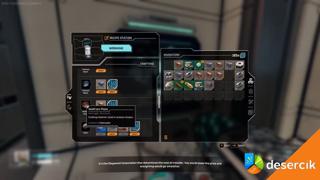Gdy Recipe Station stoi już w bazie, wejdź z nią w interakcję i wybierz ikonę Fabrykatora. Zobaczysz listę przepisów, które możesz odblokować właśnie dla tego budynku. Wśród nich znajduje się przepis na płyty wolframowe.
