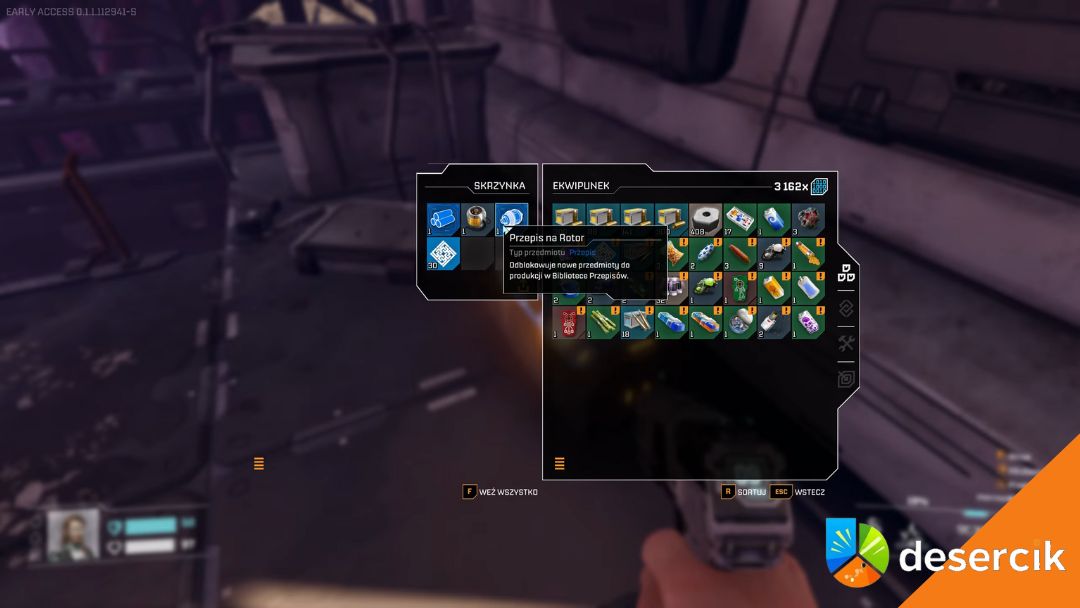 Na drugim piętrze, w niebieskim kontenerze, znajdziesz Przepis na Rotor oraz Przepis na Rury. Warto dokładnie przeszukać cały budynek w drodze w dół, bo leży tam sporo materiałów do analizy na Punkty Danych, trochę lore i kilka przydatnych przedmiotów na przyszłe wyprawy.