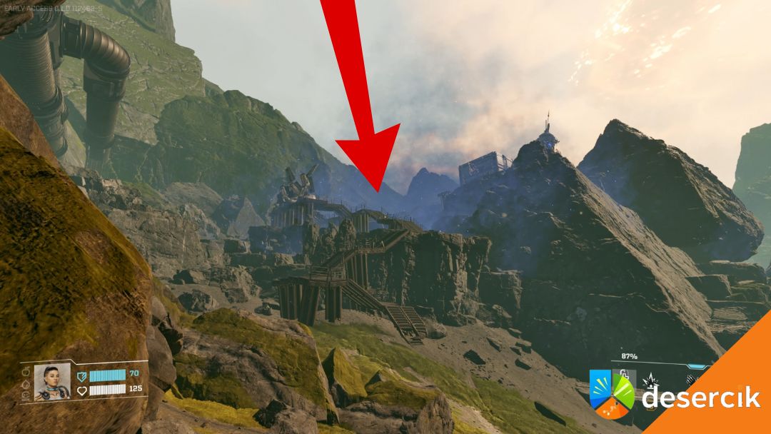 Kieruj się w stronę ogromnego, zniszczonego silnika widocznego w oddali. W jego pobliżu znajdziesz opuszczony kompleks wbudowany w skały. Gdy przejdziesz przez niewielkie wzniesienie, tuż za złożami wapnia, wolframu i tytanu, obiekt powinien znajdować się po prawej stronie.