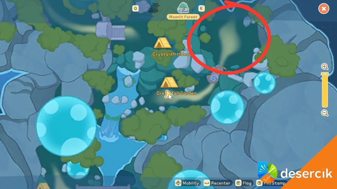 Najlepsze miejsce to Dreamfall Garden w Moonlit Forest. Jeśli spojrzysz na mapę wyspy, szukaj terenu między Dreamfall Garden a Crystalith Hideout. To właśnie tam znajdziesz skały z żyłą Żelaza.