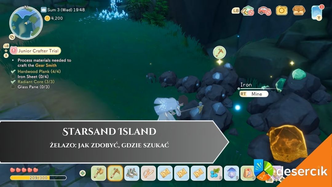 Zdobywanie Żelaza w Starsand Island jest proste, jeśli wiesz, gdzie szukać. Najlepsza lokalizacja to Dreamfall Garden w Moonlit Forest, między ogrodem a Crystalith Hideout. Skały z Żelazem mają ciemniejszy odcień szarości niż cyna, a jeśli zbliżysz się z kilofem, gra sama pokaże, co dokładnie wydobywasz. Zbierz zapas i przygotuj się do ulepszania narzędzi i przedmiotów rzemieślniczych – to krok, który mocno ułatwi dalszą rozgrywkę.