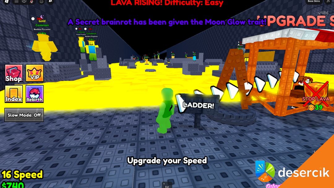 Większość z nas zna zabawę „podłoga to lawa”, ale tutaj lawa jest jak najbardziej prawdziwa. W Survive Lava for Brainrots lądujesz na mapie z innymi graczami, szukasz brainrotów w różnych strefach rzadkości i co chwilę uciekasz na platformy, gdy lawa zaczyna wylewać się spod ziemi.