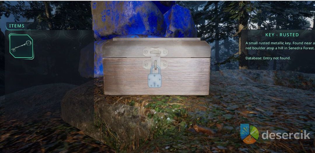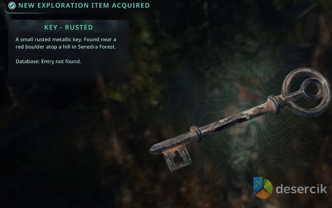 Interakcja z czerwonym głazem pozwoli ci zdobyć Rdzewiejący Klucz, jednak opis przedmiotu w grze nie podpowiada, gdzie go użyć.