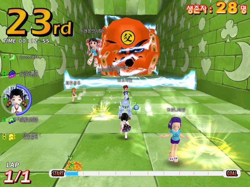 Jest także tryb baton, który dzieli graczy na drużyny po trzech uczestników, każdy przez pewien odcinek wyścigu przenosi pałeczkę i modli się, aby kolejny członek drużyny w porę ja przejął i ruszył dalej jak najszybciej. Jednak tryb Boss wydaje mi się najbardziej interesujący, wszystkie inne tryby pozwalają na grę maksymalnie ośmiu graczom, ale Boss pozwala bawić się trzynastu osobom. Tutaj właśnie będzie tzw. bieg o życie, gdzie musimy gonić przed siebie mając na karku wielkiego bossa, który nie odpuści dopóki nie dobiegniemy do mety. Jeśli zwolnimy tutaj choć na chwilę to będzie po nas, a wygra ten, który żywy osiągnie cel. Standardowe tryby mogą wydać się monotonne po pewnym czasie i dlatego Boss Mode jest czymś co nas wybudza z szarej codzienności.