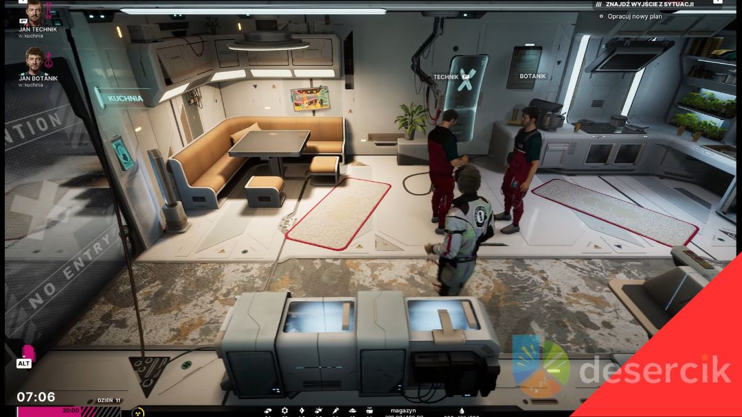 Na początku wszystko wydaje się banalne – stawiasz kuchnię, wrzucasz coś do garnka i gotowe. Szybko jednak okazuje się, że utrzymanie załogi przy życiu to nie kwestia paru kliknięć. Codzienne karmienie, planowanie zapasów i dbanie o morale stają się podstawą funkcjonowania bazy. Same papki wystarczą tylko na chwilę – z czasem Twoi altersi będą potrzebowali czegoś lepszego, smaczniejszego i bardziej pożywnego, bo od tego zależy ich samopoczucie i wydajność. A jak morale siądzie, to i cała drużyna zaczyna się sypać.
