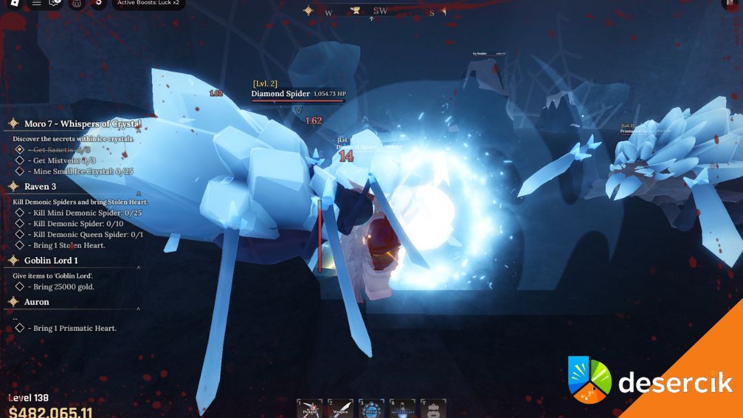 Każdy z nich może upuścić Prismatic Heart, ale szansa na drop różni się w zależności od trudności przeciwnika. Crystal Spider ma najniższą szansę, a Prismarine Spider najwyższą, więc wybór jest dość oczywisty.