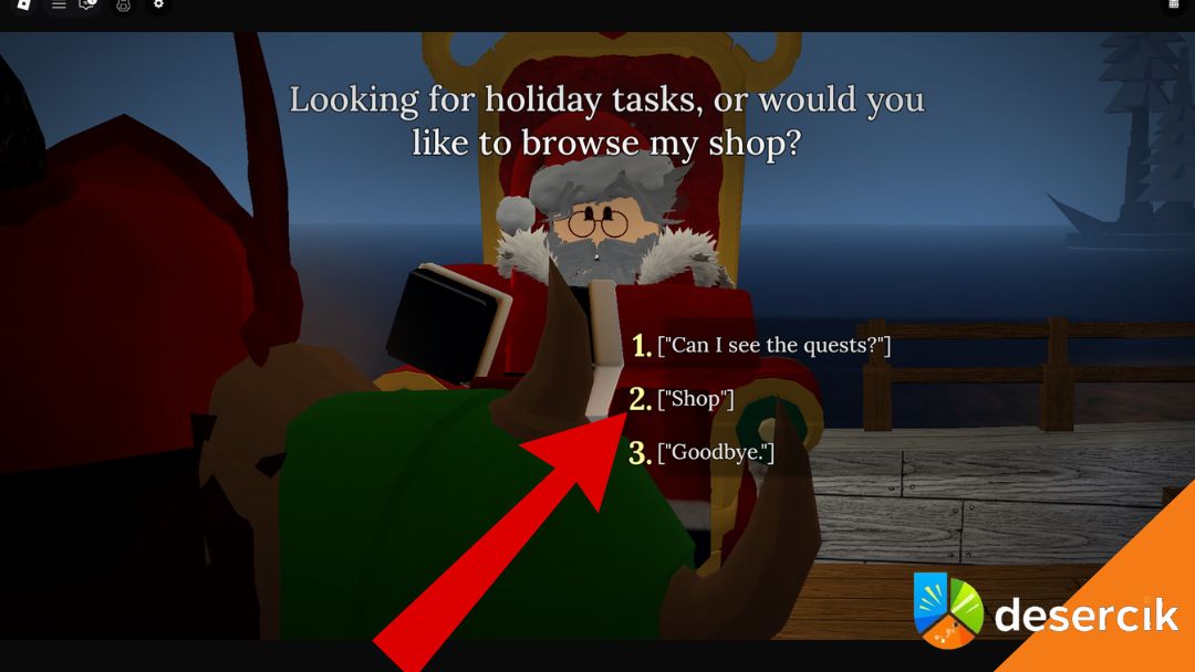 Santa stoi tuż obok miejsca spawnu, na statku. Trudno go przeoczyć, więc nawet jeśli jesteś tam pierwszy raz, trafisz bez problemu.