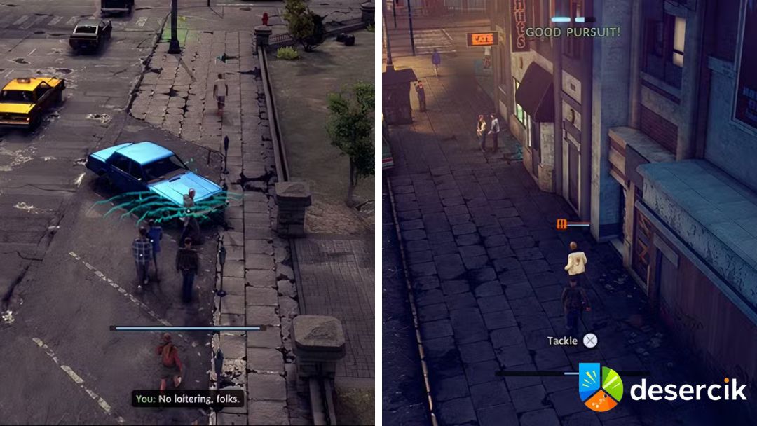 Wcielasz się w Nicka Cordella Jr., świeżego policjanta, który idzie w ślady swojego ojca. System nieśmiercionośny odzwierciedla podejście do współczesnego patrolowania – często musisz wykonać zadanie bez ofiar śmiertelnych, bo zbyt ostra reakcja potrafi zabrać XP albo utrudnić misję.