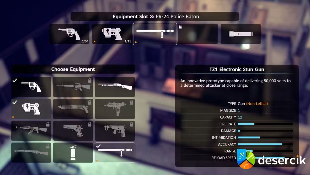 Na start masz trzy sloty na wyposażenie, a dopiero później wbijesz czwarty. W Zbrojowni możesz dowolnie mieszać broń palną z narzędziami nieśmiercionośnymi. Jedno miejsce zawsze warto przeznaczyć na sprzęt o niskiej sile rażenia.