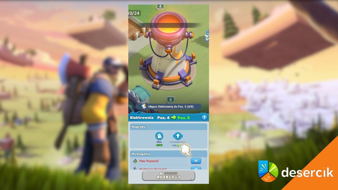 Dlatego zamiast od razu rozwijać Ratusz czy mury, lepiej najpierw zadbać o energię. Dobrze rozwinięta Elektrownia przyspiesza każdy element gry, nawet jeśli nie widać tego od razu.