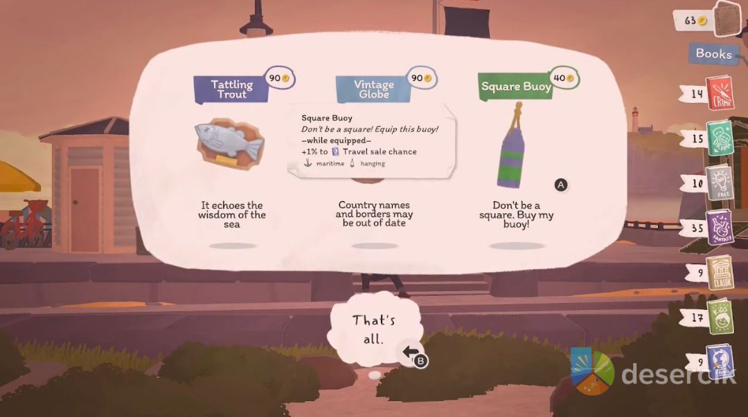 - Poznaj Tildę – była właścicielka księgarni, która pojawi się we wczesnych dniach Twojej gry. Mów z nią codziennie, gdy tylko się pojawi, zwłaszcza gdy jesteś w Café Liberté lub na Waterfront Square.