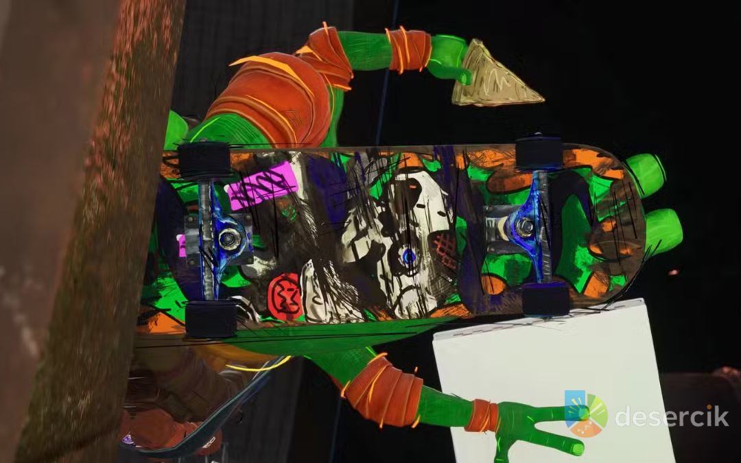 W trailerze zwróciliśmy uwagę na deskorolkę Michelangelo, która wygląda identycznie jak ta z najnowszego filmu Teenage Mutant Ninja Turtles: Mutant Mayhem (2023). Postać w grze wyraźnie nawiązuje do świeżego, filmowego wizerunku żółwia, co jest świetnym ukłonem w stronę zarówno fanów gier, jak i kinowej serii.