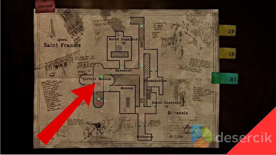 Zagadka znajduje się w Torture Museum, które jest częścią klasztoru. Aby się tam dostać, najpierw trzeba uzyskać dostęp do przyległego Museum area. Drzwi są zamknięte na specjalny mechanizm, który odblokowuje Museum Key – otrzymujesz go od Josepha po dostarczeniu Cursed Book znalezionego w więzieniu.