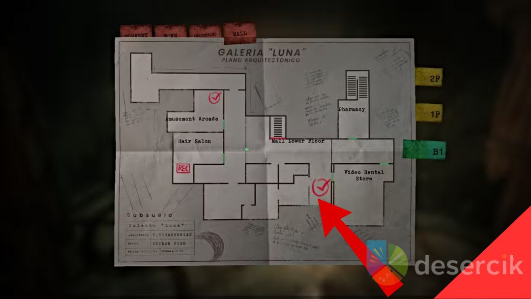 Gdy już dostaniesz się do wnętrza centrum handlowego, schodź na poziom piwnicy. Tam, w jednym z korytarzy prowadzących obok Video Rental Store, zobaczysz makabryczną scenę – człowieka przykuty do metalowej konstrukcji, będącego centrum tej zagadki. Trudno go przegapić – wygląda jak żywcem wyjęty z koszmaru.