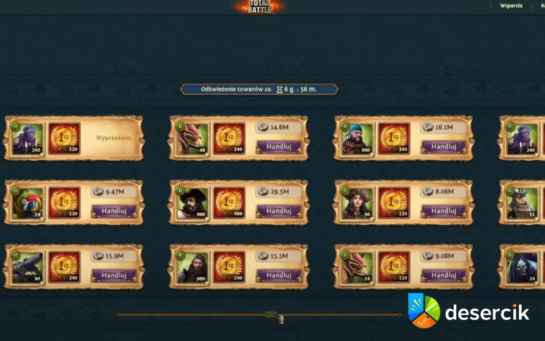 - Miej grę pod kontrolą – ustaw Total Battle na drugim monitorze, na głównym rób coś innego, ale reaguj natychmiast, gdy pojawi się giełda.