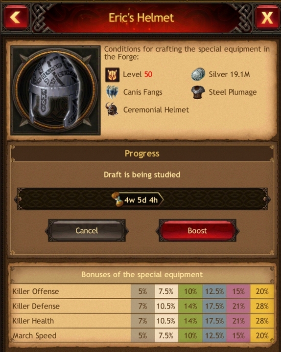 Możesz zacząć wytwarzać nowy sprzęt: Przejdź do zakładki Projekty w Gildii Broni i naciśnij przycisk „Craft” w oknie badanego Szkicu. Przejdź do zakładki Wyposażenie w Kuźni, a następnie przejdź do podkategorii Specjalnej dla jednej z kategorii (Hełmy, Pancerz, Broń, Buty i Amulety) w zależności od wyposażenia, dla którego Projekt był badany.