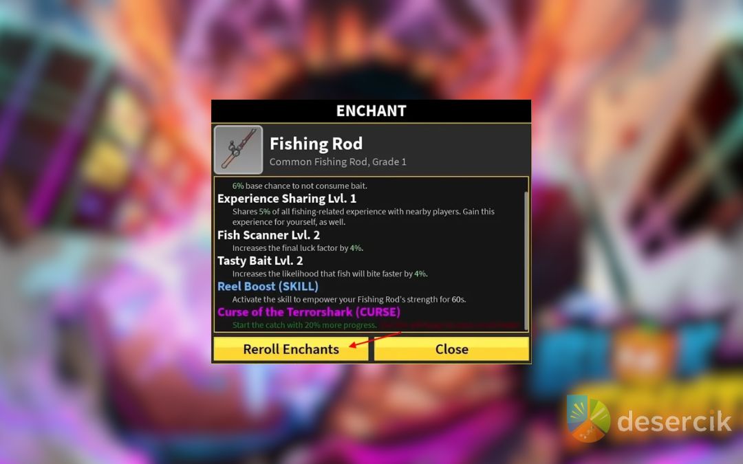 System zaklinania wędki działa podobnie jak w Fisch. Aby z niego skorzystać, trzeba odnaleźć NPC Dragon Talon Sage, który pojawia się losowo na mapie. Dzięki zwojom możesz zmieniać właściwości swojej wędki.
