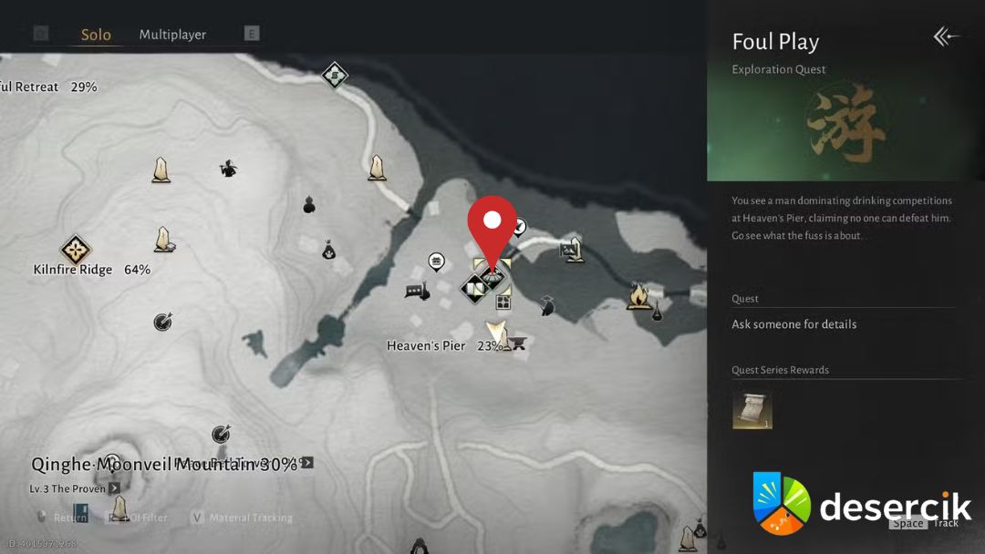 Podczas włóczenia się po Heaven’s Pier trafisz na zadanie Foul Play. Jest krótkie i proste. W centrum całej akcji stoi Hu Wei, typ, który chwali się, że nikt go nie pokona w piciu. Jeśli pogadasz z Qiu Yuehaiem stojącym nieopodal, dowiesz się, że Hu Wei „wygrywa”, bo wspomaga się flakonikiem specjalnych pigułek.
