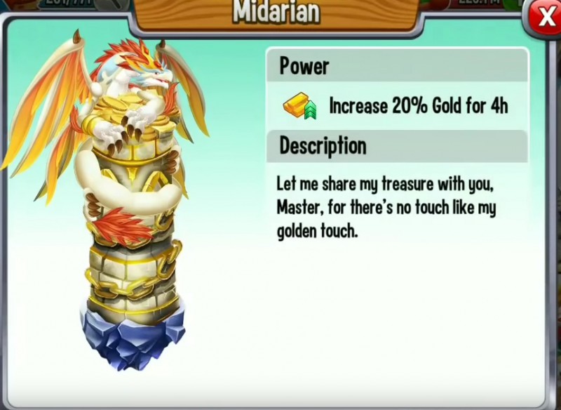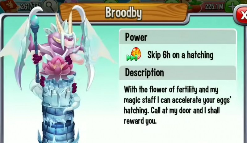 • Efekt: skraca czas wyklucia się smoków o 6 godzin, co pozwala szybciej powiększać twoją kolekcję.