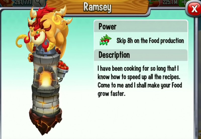 • Efekt: aktywacja Wieży pozwala pominąć 8 godzin produkcji żywności, co znacząco przyspiesza rozwój twojego smoczego ekosystemu.