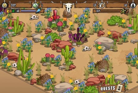 Więc jak mówiłem w tym MMO musimy uprawiać ziemie, więc do roboty, czeka nas mnóstwo chwastów i kaktusów do usunięcia. Teren trzeba oczyścić (każda zakończona akcja, czy to czyszczenia, czy też zbioru plonów, nagradzana jest zestawem zasobów – narzędzia, punkty, pieniądze).Jednak tak jak w Leśna Przygoda tak i tutaj każda akcja wymaga 1 pkt energii. Energia przyrasta co pewien czas, ale jak dla mnie to beznadzieja. Nie podoba mi się osobiście ta gra.