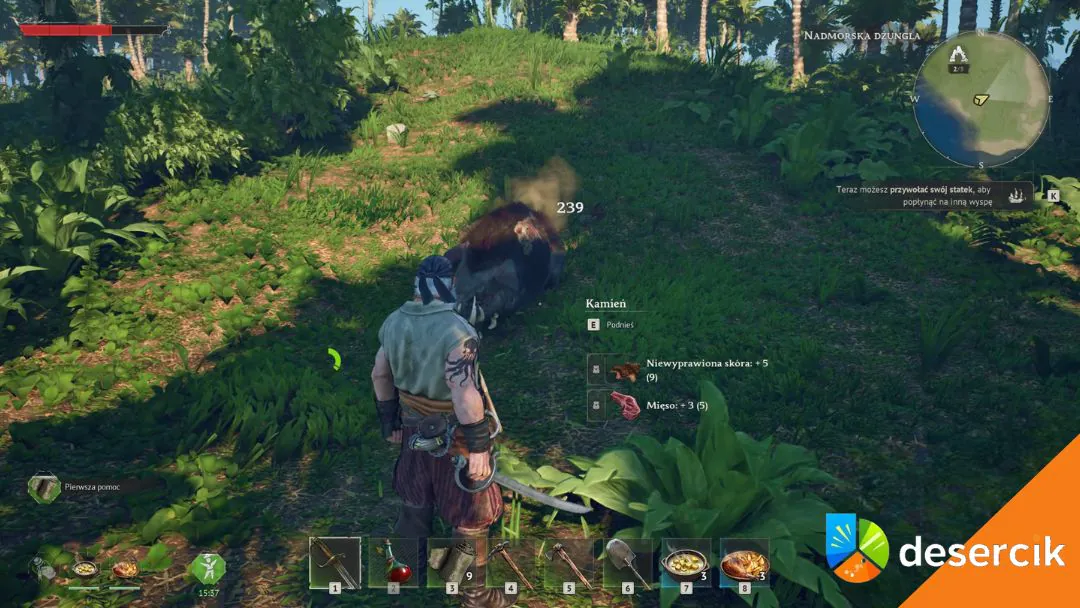 Na papierze wygląda to prosto, ale w praktyce jest to pierwszy moment, w którym gra sprawdza, czy rozumiesz już podstawy walki i zbierania zasobów. Jeśli nie, to wcześniej czy później zabraknie ci skóry albo zginiesz przy farmieniu dzików.