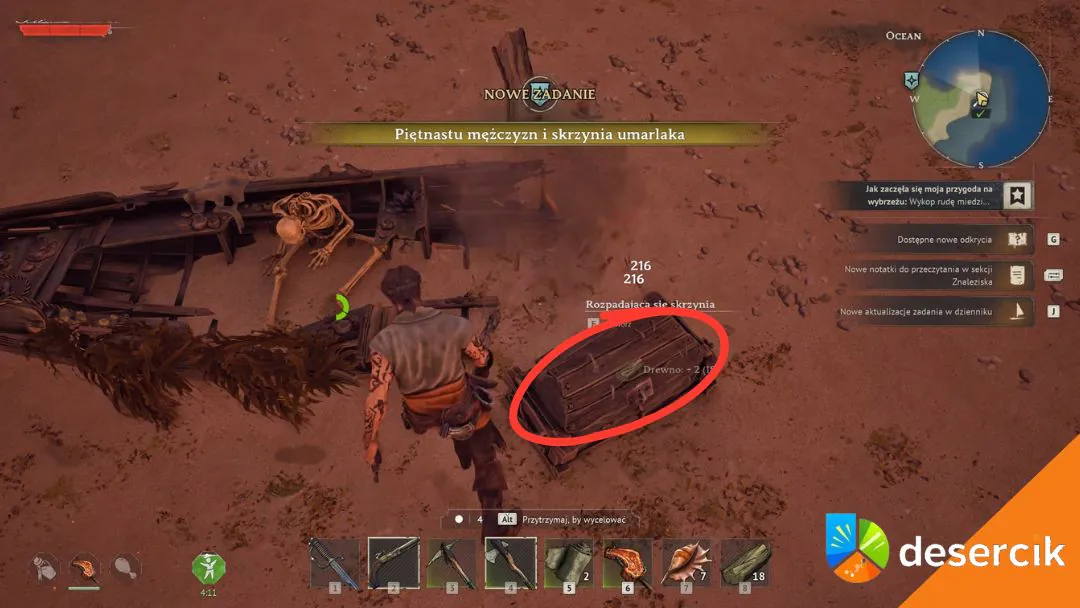 Duże znaczenie ma też eksploracja, ale tylko wtedy, gdy robisz ją dokładnie. Każda lokacja na wyspach, czy to obóz piratów, ruiny, wrak statku czy posterunek, ma skrzynie i inne elementy do zebrania. XP dostajesz dopiero po wyczyszczeniu całego miejsca, więc szybkie przejście nic nie daje. Część skrzyń jest ukryta, więc trzeba faktycznie przeszukać teren, a nie tylko go minąć. Dobrze też przygotować się wcześniej i zabrać namiot oraz punkt szybkiej podróży, bo to oszczędza dużo czasu przy farmie większych obszarów.