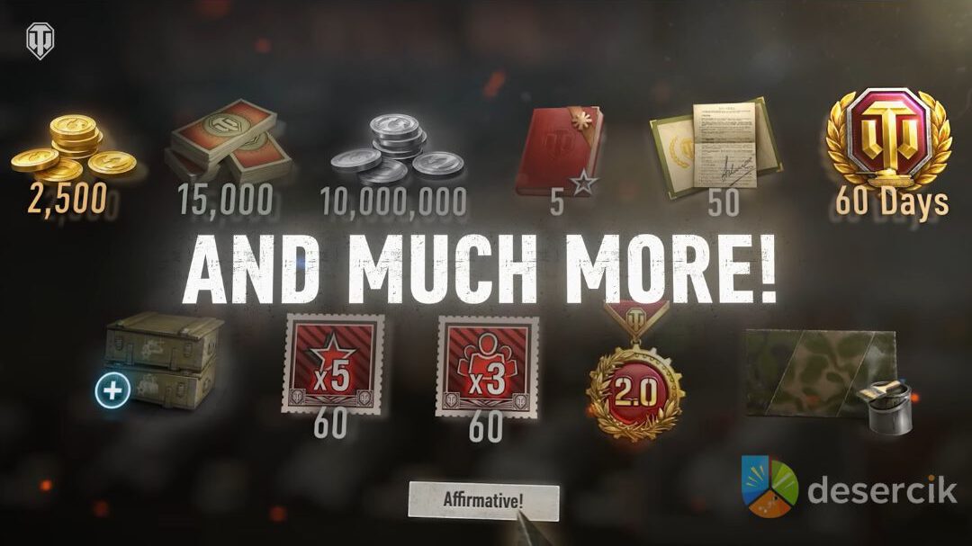 - Weterani, którzy dołączyli do gry przed aktualizacją 2.0, mogą zgarnąć cały drzewko technologiczne od VI do X tieru, a do tego paczkę bogactw: złoto, obligacje, kredyty i aż 60 dni konta premium.