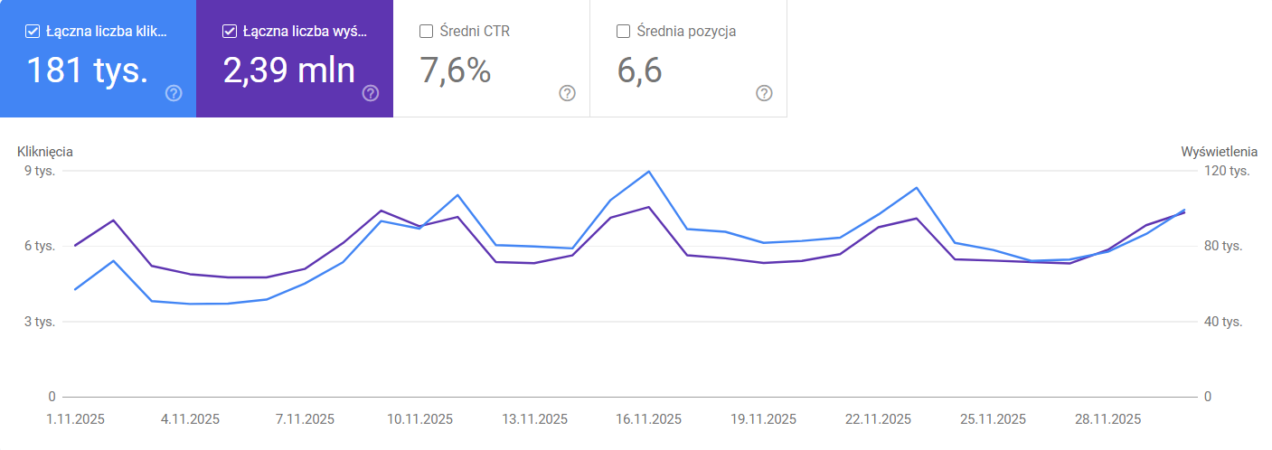 Ruch bazuje głównie na wyszukiwarkach Google i Bing.