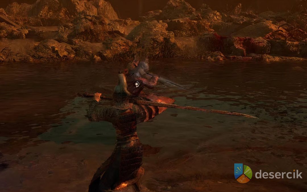 • Szarża z pchnięciem: Gdy dzieli Cię od bossa spory dystans, Honglan przygotowuje miecz do pchnięcia i szybko szarżuje w linii prostej. Unik w bok jest kluczowy, aby uniknąć tego ataku.