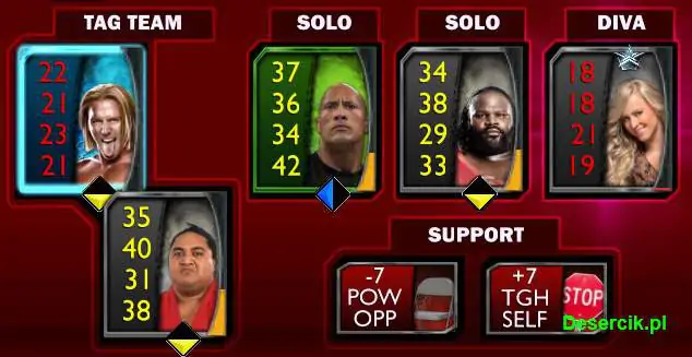 Jeśli trafisz na dwie identyczne karty tego samego wrestlera, który nie należy do najniższego tieru, nie wahaj się ich połączyć. Taki zabieg pozwala stworzyć znacznie silniejszego zawodnika, który często zostaje w talii na długi czas.