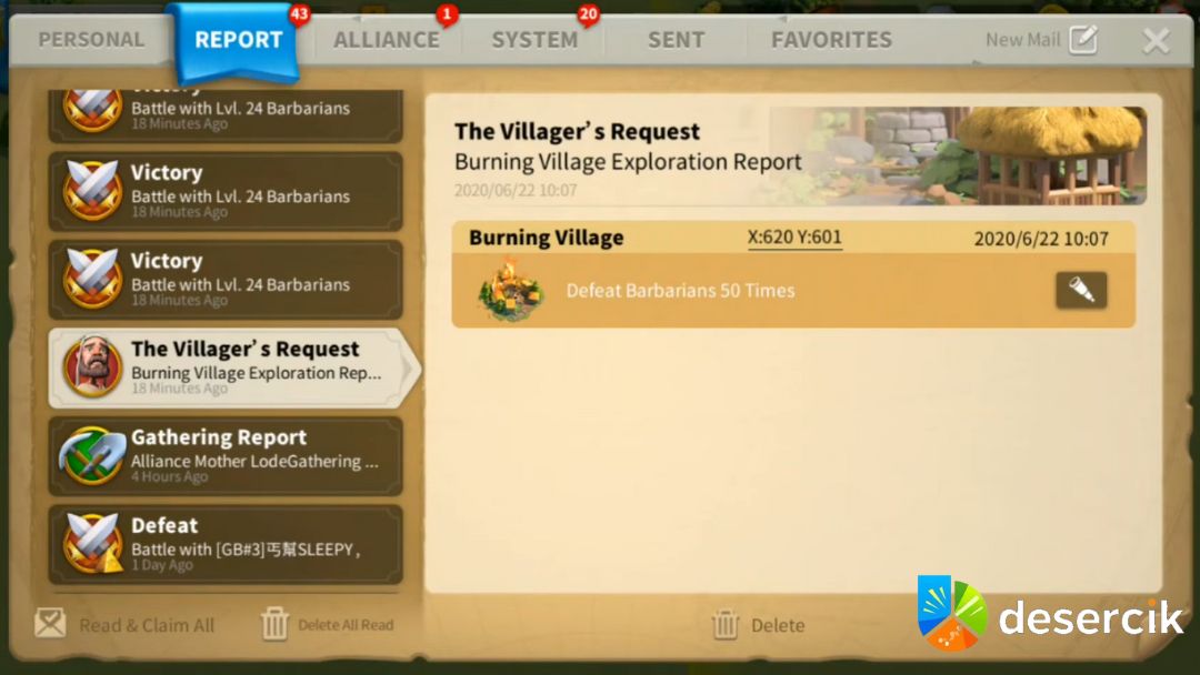 - Na mapie pojawiają się płonące wioski, które możesz zbadać zwiadowcą.